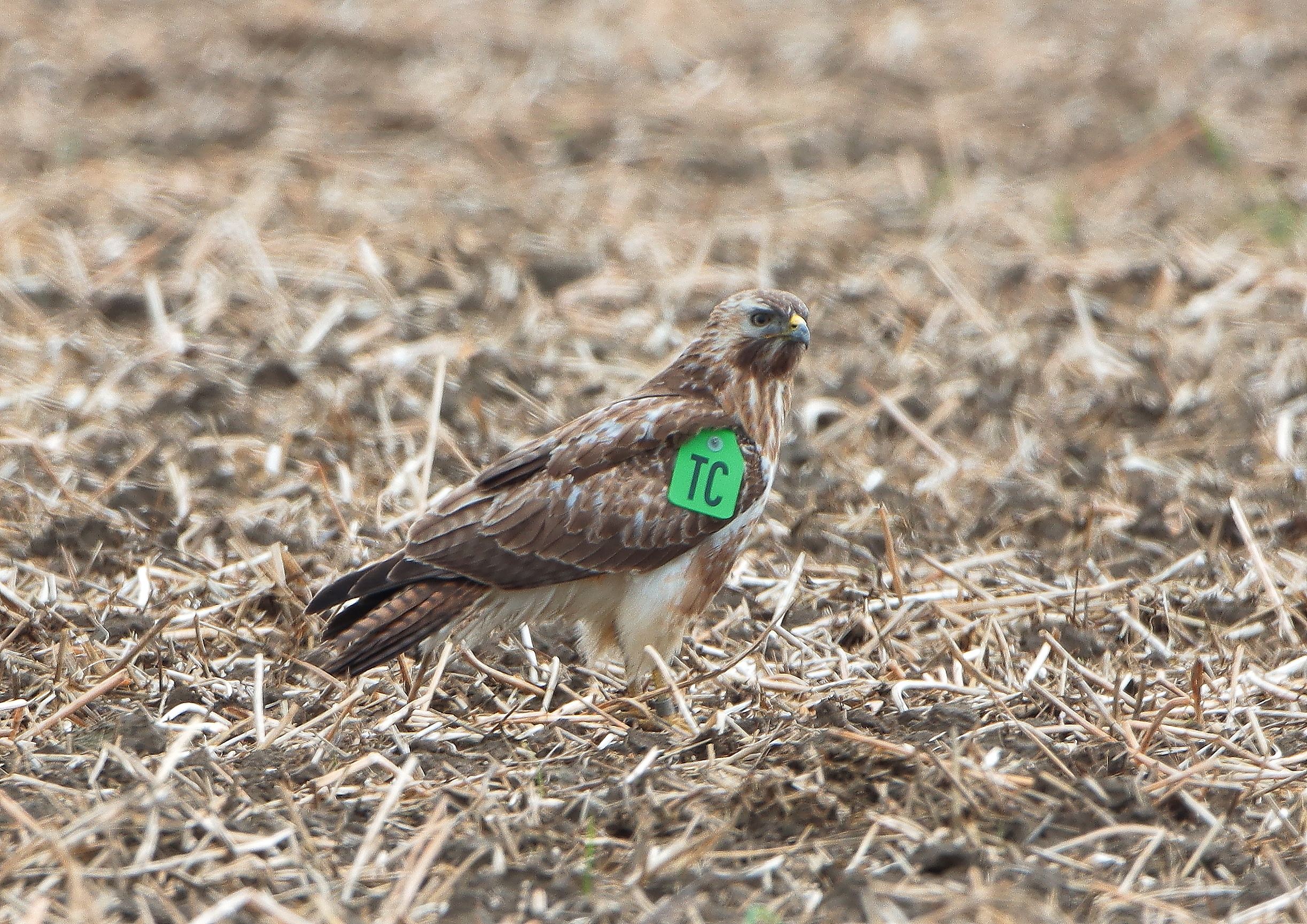 Greifvogelbeobachtungen im südl. Hamm: je 1 Rotmilan in letztjährigen Brutrevieren im NSG Donauer Bach und an der Provinzialstrasse/Wiescherhöfen, Mäusebussard grün TC zeigte sich unter 10 Mäusebussarden auf einem Acker am Kettermannweg/Unterallen (A. Langer).