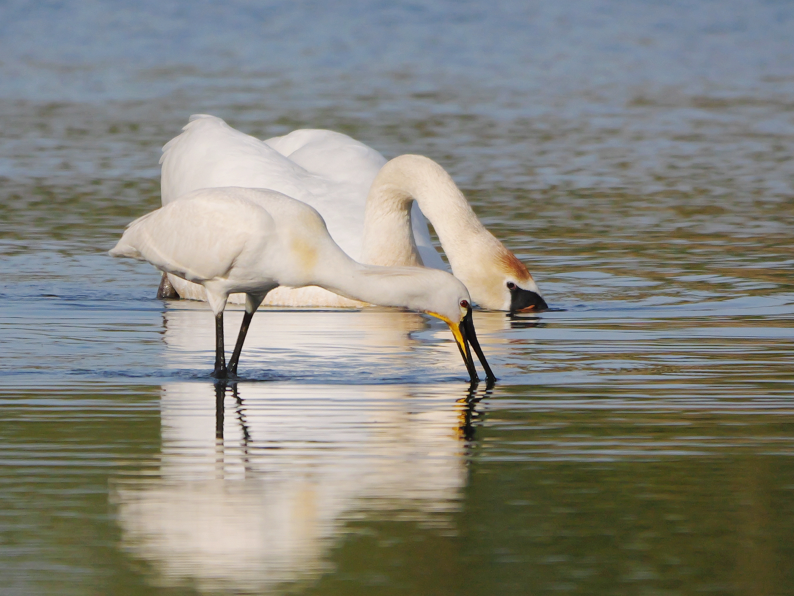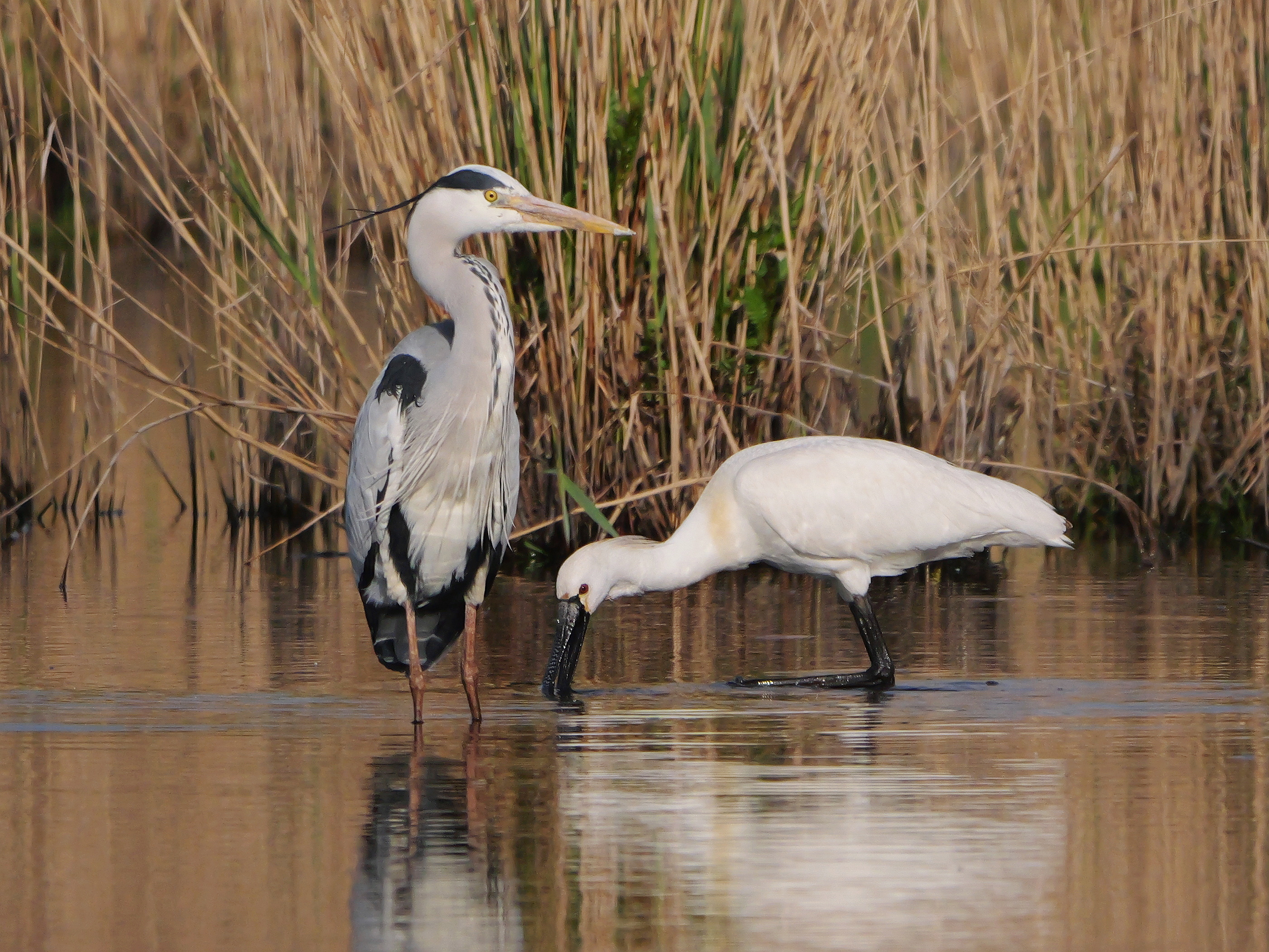 In einer kleinen Schilffläche südlich der ehem. Zechenklärteiche 1 BP Wasserrallen, 1 BP Rohrammern, 1 Kuckuck und 1 singender Rohrschwirl. Im Bereich der Scheringteiche ein nahrungssuchender Löffler ( rastet bereits seit 19.04.2026 hier), 2 Haubentaucher, 12 Schnatterenten, 3 Krickenten, 4 Graureiher, 4 Flussuferläufer, 1 Seidensänger, 4 Rohrammern und mind. 250 durchziehende Rauchschwalben. Im NSG Alte Lippe und ehem. Radbodsee u. a. 2 Schnatterenten, 2 Kormorane, 1 Silberreiher, 4 Graureiher und 1 rufender Kuckuck. Auf dem Radbodsee 1 BP Haubentaucher (N. Pitrowski).