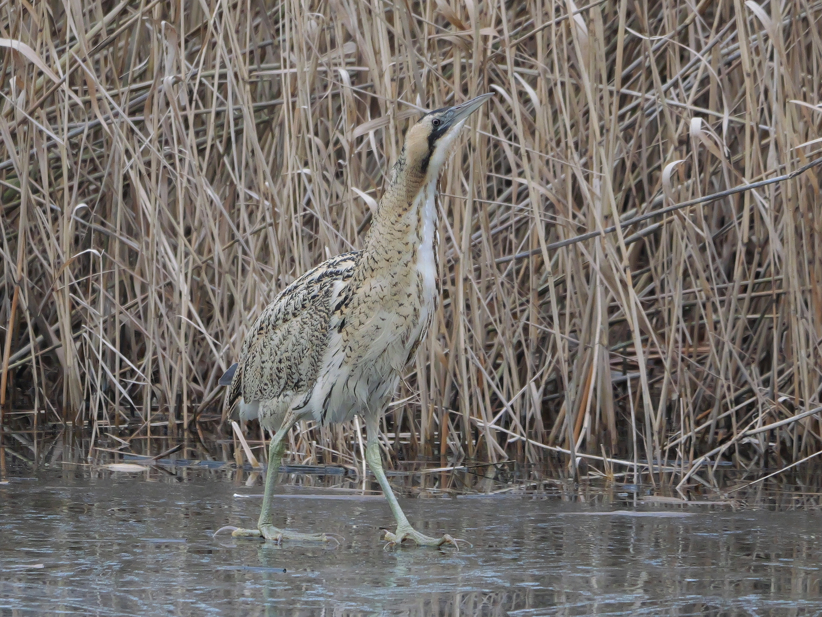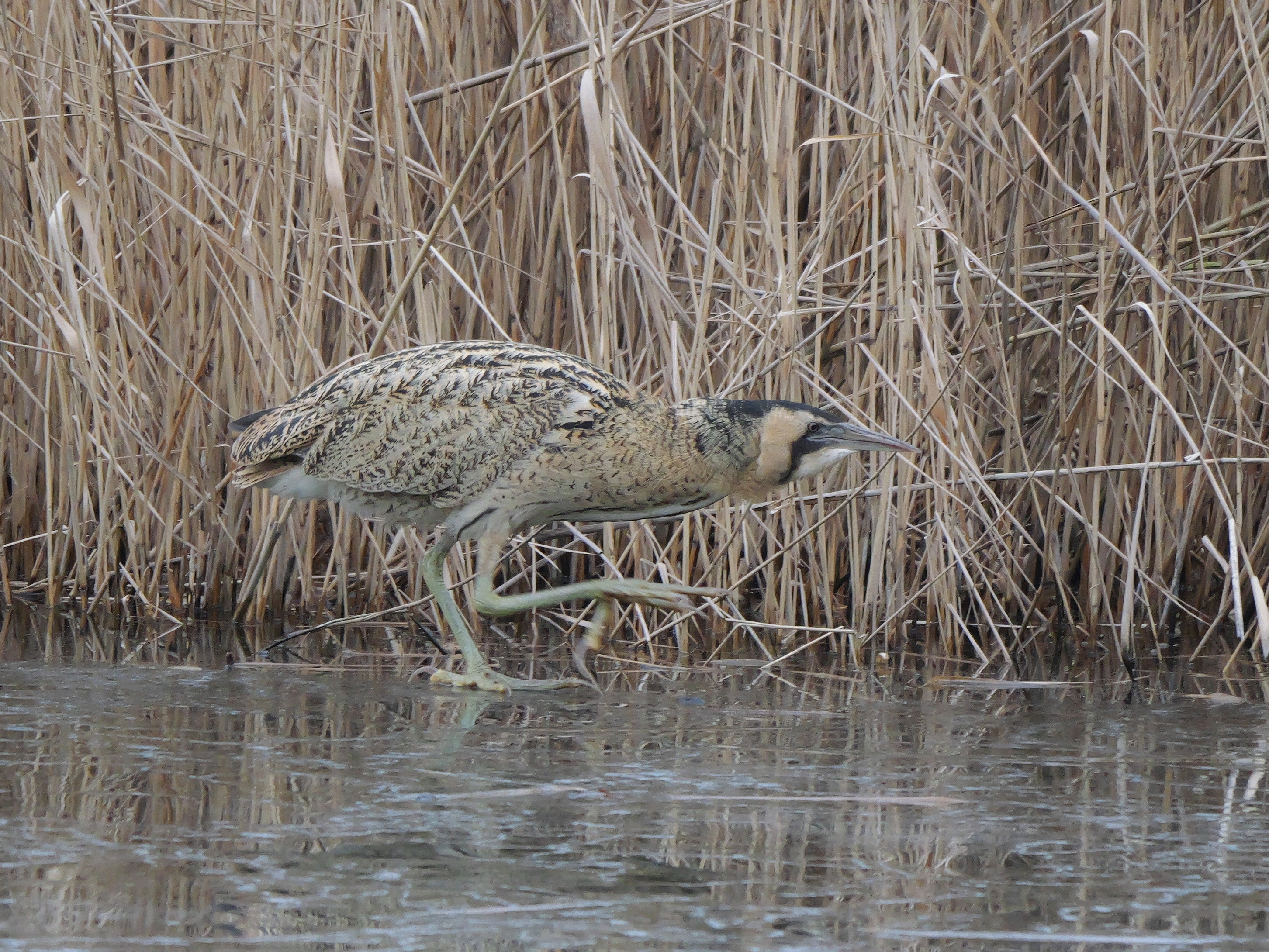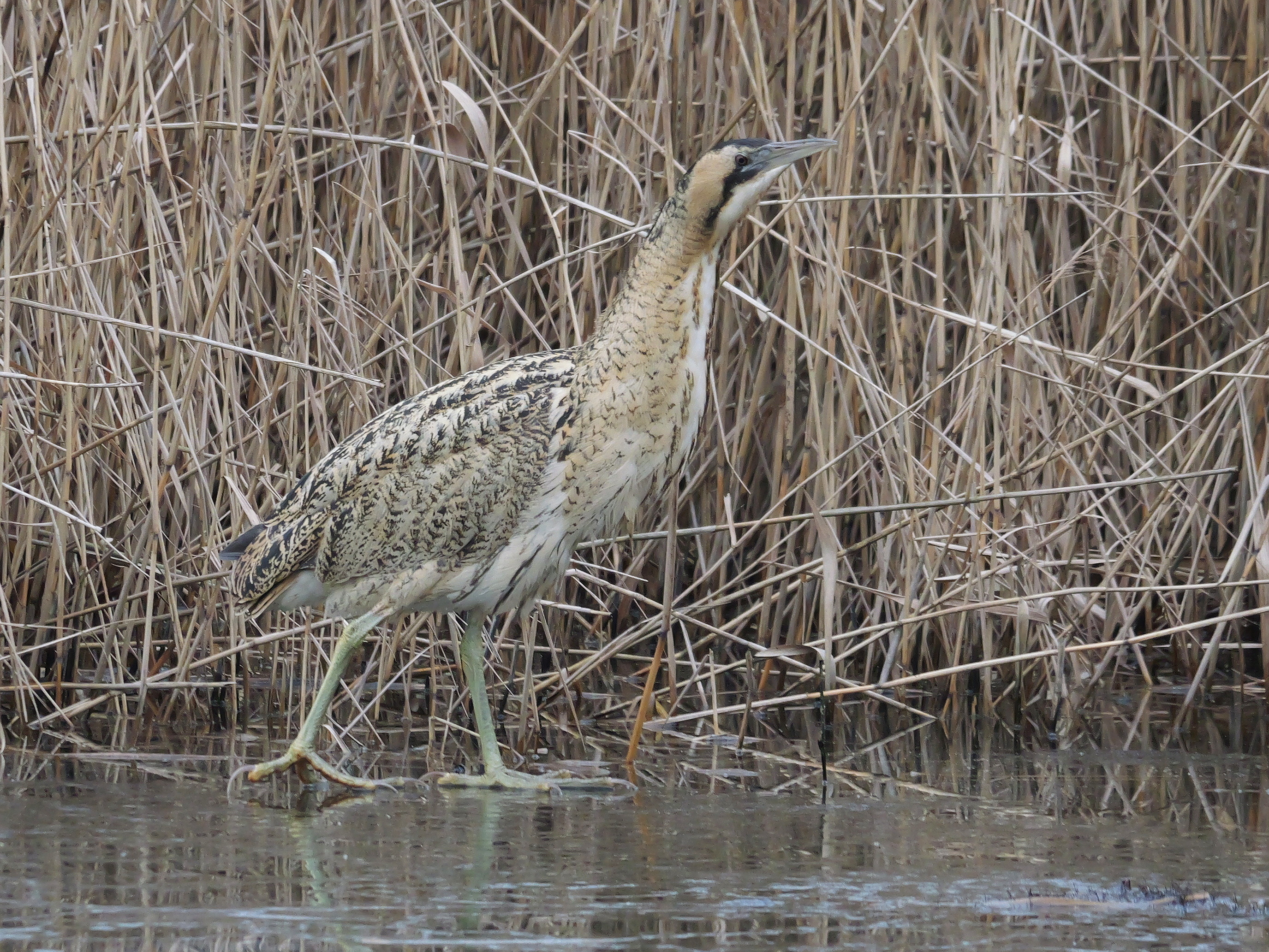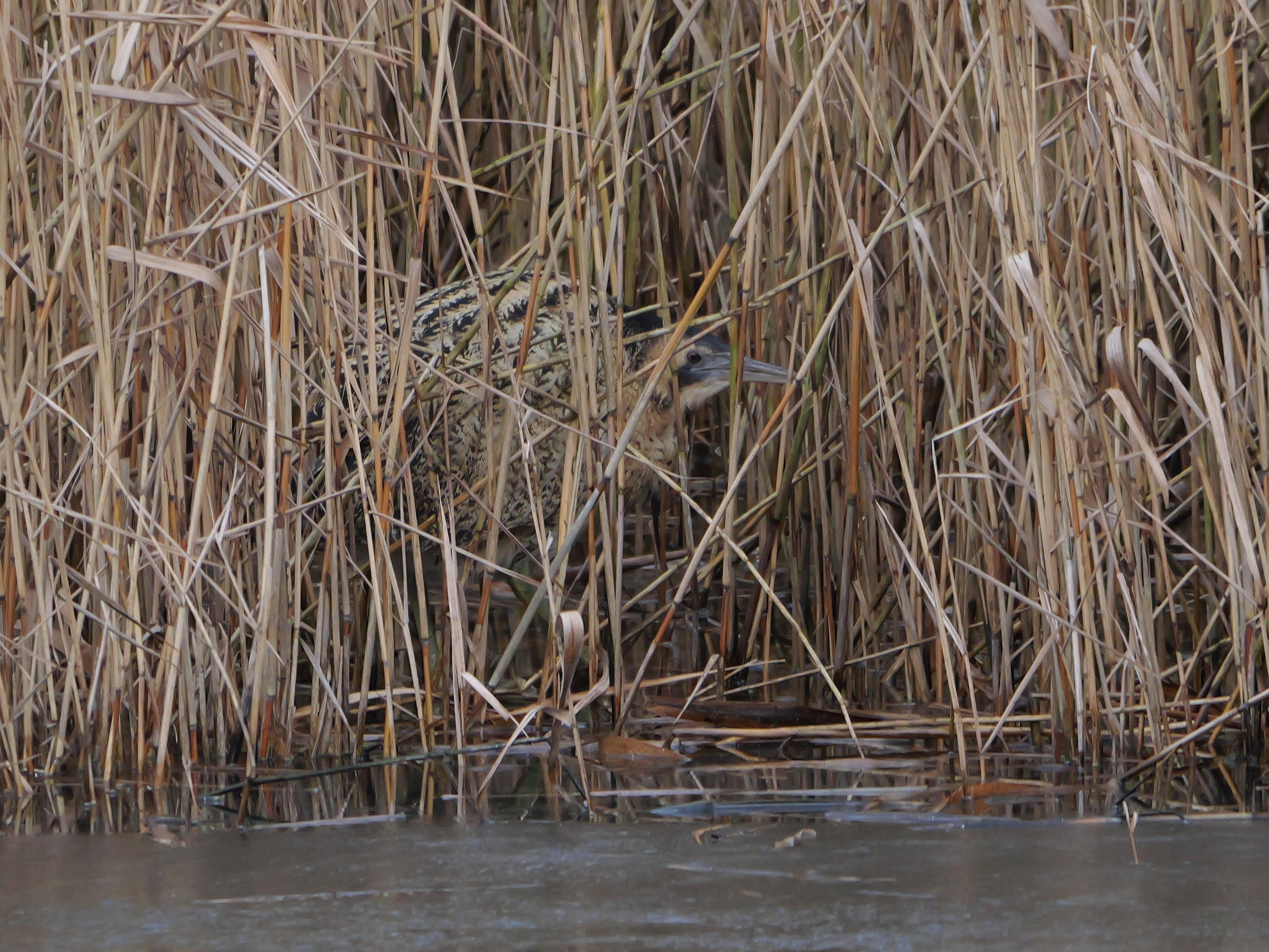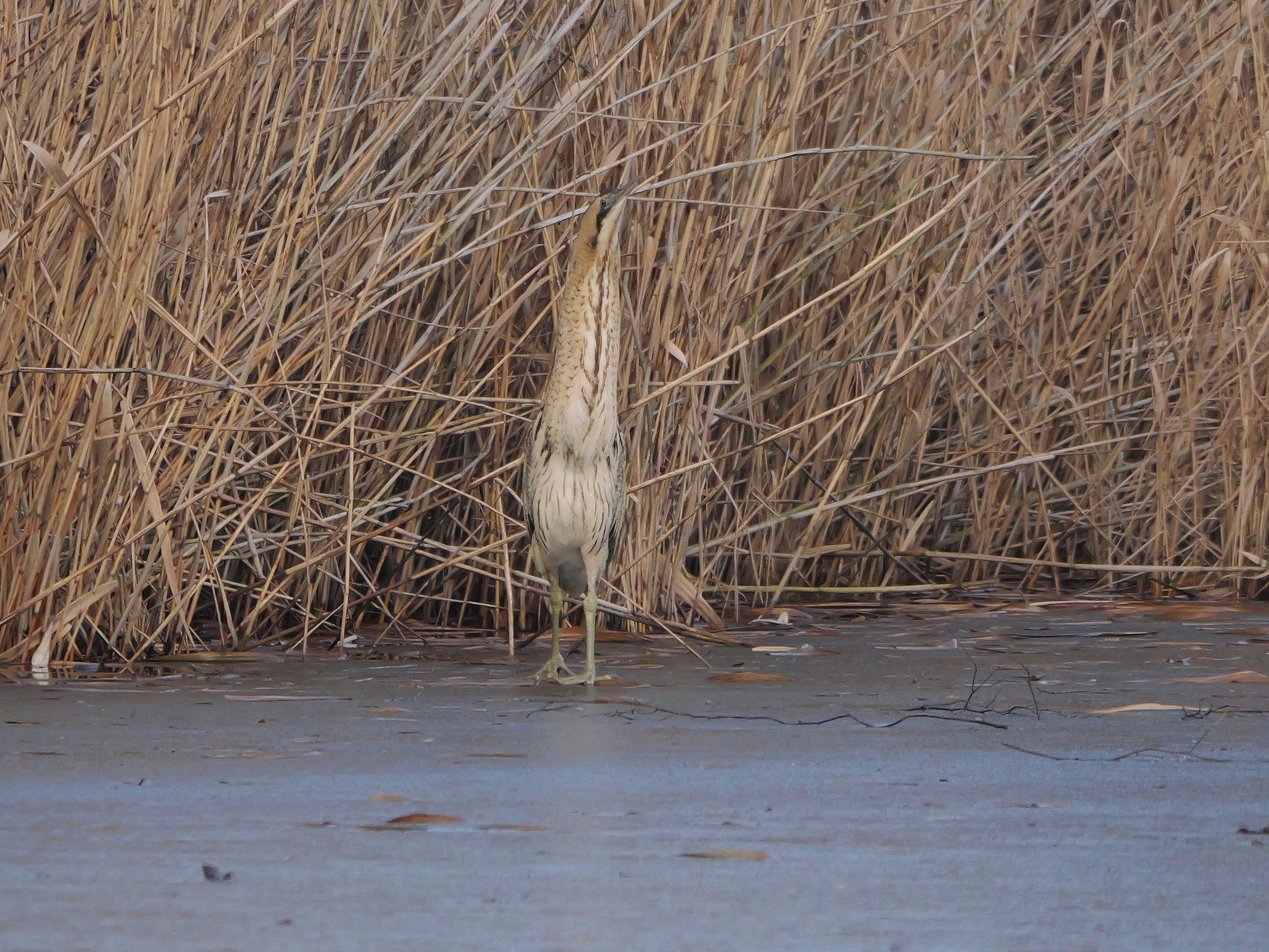 Am mittlerweile alljährlichen Rast- und Überwinterungsplatz rund um den Schilfgürtel des Teichs am Tibaum weiterhin für kurze Zeit eine rastende Rohrdommel (N. Pitrowski, C. Hütter).